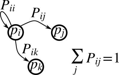 Transition rule: \(p_{new} = P^T p_{old}\)